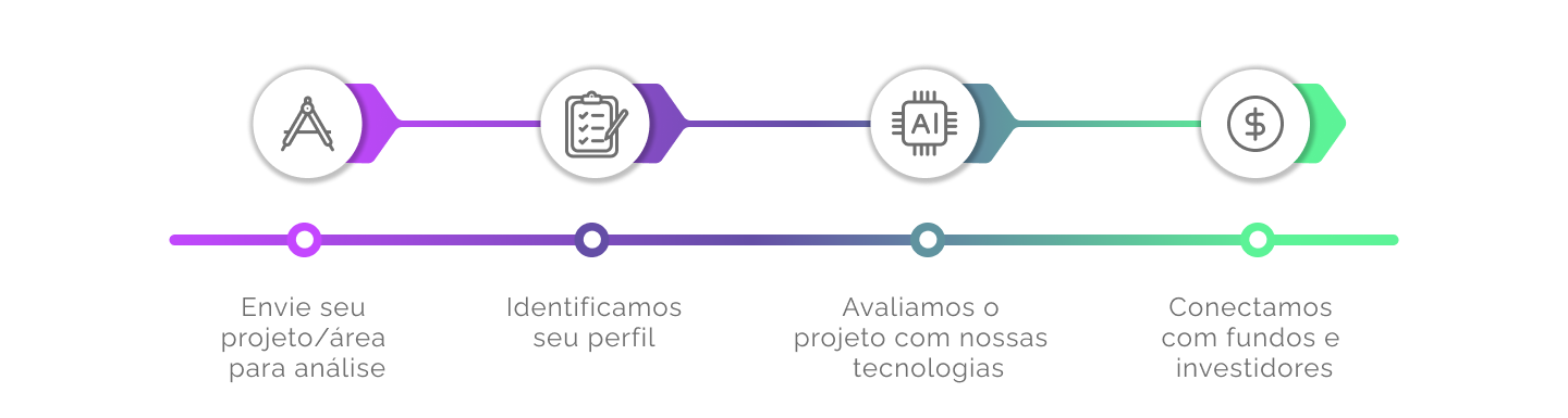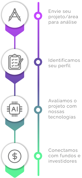 Aqui na LOCATES nós tratamos cada projeto individualmente, utilizando todos nossos recursos e tecnologia para entender as melhores possibilidades na busca de capital externo. Perfilamos o projeto e sua empresa para encontrar o investidor ideal para você, seja via equity (sócio) ou em aporte financeiro diretamente no projeto.
